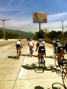 In cycling and in life it’s very important to make friends. The Vanderkittens excel at making friends so on our last day before racing was to begin we met up with the Colombian national team to go on a short escorted ride. It was our understanding that we were to be taken to do a few laps on a quiet and low-traffic loop just a couple of kilometers from the hotel. The loop just so happened to be on a 6 lane freeway with many signs like the above that we ignored (they were in Spanish so I plead ignorance).