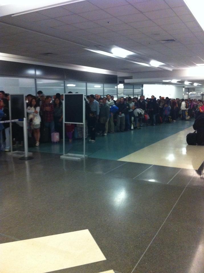 last two days with the team but needed to get home and didn’t want my health to suffer further. Wilfredo drove me and my gear to the airport where I hopped a plane to San Francisco. When I arrived in San Francisco I was greeted by this line for immigration. I’m not lying, this was only the back 25% of the line and I only had 1:45 to get through immigration, pick up my luggage, get through customs, walk to the domestic terminal with my luggage, re-check my bags, and make my flight to Seattle which happened to be the last flight of the night. Adventure!