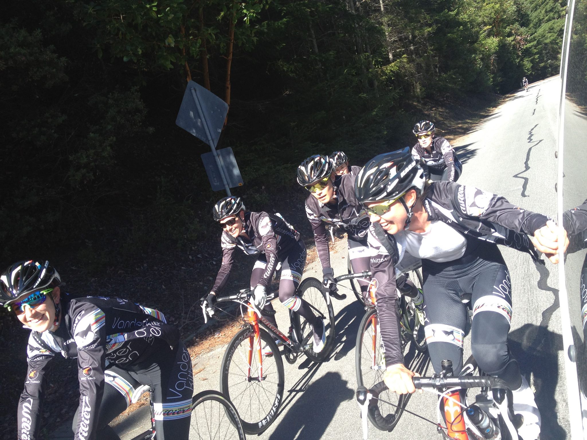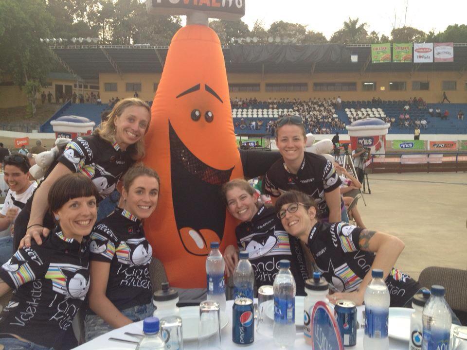 planet than Vanderkitten. At every meal and before and after every race I would look around at the other teams who were often sitting quietly together or playing with their phones (okay we played with our phones too but much less) and we were always cracking up over one thing or another. Every woman on this trip added something cool and interesting to the team to make us into this vibrant and awesome whole. Kate was without a doubt one of the wittiest and funniest people I have ever met. Liza and Jeannie were constant sources of laughs and wisdom. Starla is one of the most selfless teammates I’ve ever met. Ruth, despite her youth is funny, fearless, and focused and knows bike handling and tactics inside and out.