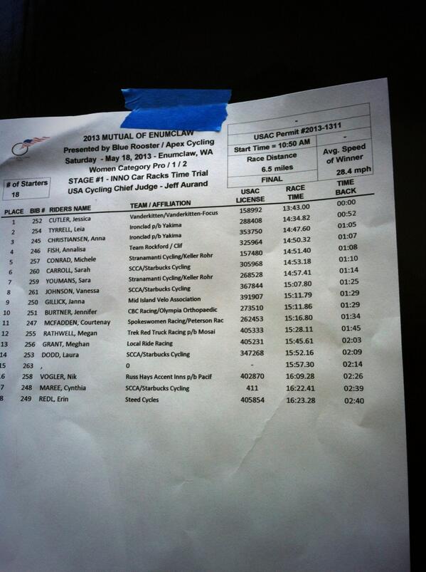 o not win the other stages and not have to chase every time bonus. Let me just say, goal, accomplished. Over a super short course, I finished 27 seconds faster than last year and won the TT by over 50 seconds averaging about 28 mph. With my cushion I was able to